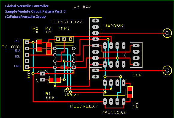 GVCへ接続するセンサーやリレー類などに汎用的に使える基板も開発しています。